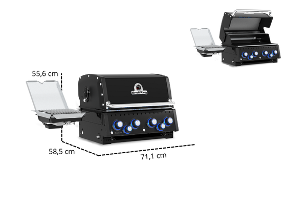 Vgradni plinski žar Baron™ 490 IR Shadow BI združuje moč, vsestranskost in eleganten temen videz za sodobne zunanje kuhinje. Različica Shadow izstopa s temno prednjo kontrolno ploščo in osvetljenimi gumbi, ki ustvarijo izrazit, “premium” videz ter se popolno ujemajo z modernimi vgradnimi rešitvami.