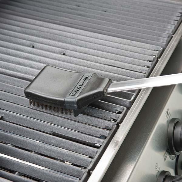 Krtača za čiščenje rešetke žara narejena iz nerjavečega jekla z inovativno oblikovano glavo krtače, ki kar najbolje podpira naravno gibanje. Integrirana zaščita pred brizganjem zagotavlja, da pri ščetkanju rešetk umazanija ne leti proti vam. Glava krtače je zamenljiva.