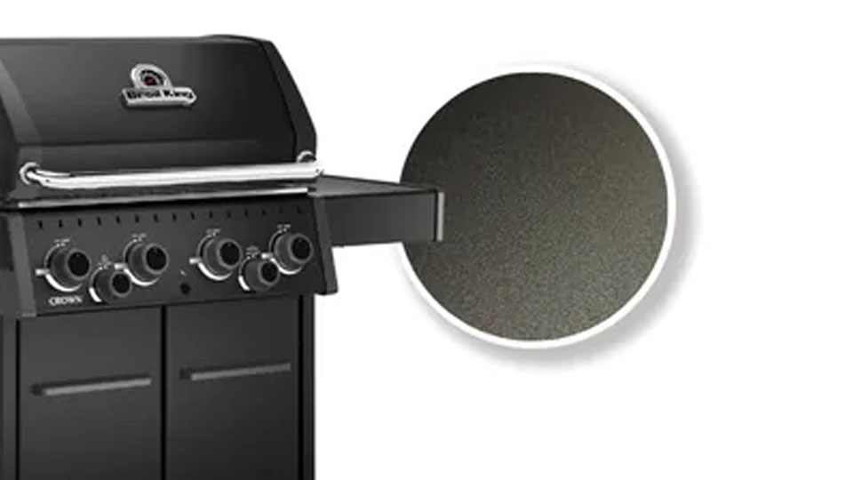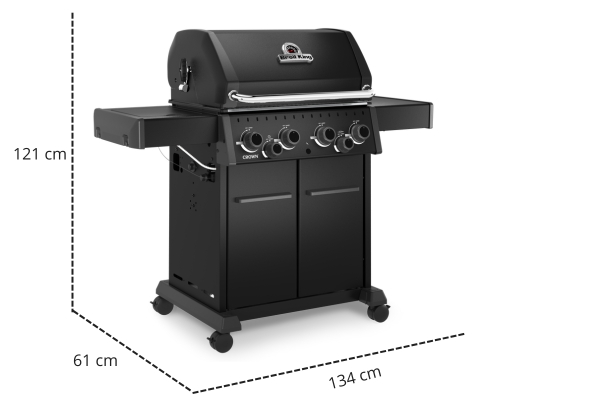 Plinski žar Broil King Crown™ 490 Shadow združuje dodelan videz in preverjeno Broil King zmogljivost za vsakodnevno peko. Mat črna prašno barvana izvedba Black Knight poskrbi za enoten, sodoben “Shadow” značaj, premišljena zasnova kuhalne komore pa pomaga ohranjati stabilno temperaturo za enakomerno in učinkovito peko. Srce žara so 4 gorilniki Dual-Tube™ z močjo 11,4 kW, ki omogočajo ustvarjanje direktnih in indirektnih con, uparjalniki Flav-R-Wave™ iz nerjavečega jekla pa prestrežejo sokove in maščobe ter jih uparijo nazaj proti jedem za izrazitejši žar okus. Na voljo so dvostranske litoželezne rešetke Flav-R-Cast™ z možnostjo nagiba, s čimer lažje odvajate sokove in zmanjšate možnost izbruhov plamena. Skupna površina peke znaša 4.155 cm², glavna rešetka pa meri 65 × 44,5 cm.