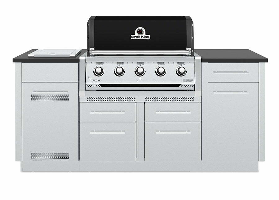 Plinski žar Rega™. Ker ima vsak svoje kraljestvo. Vgradni plinski žar Regal™ 520 je namenjen kuhinjskim navdušencem, ki imajo radi individualne rešitve, prilagojene njihovim potrebam. Regal 520 je začetna različica vgradnega žara, ki ponuja okus in zmogljivost žara Broil King s tehnologijo PGT. Zaradi uporabljenih tehnologij je pečenje na žaru bolj praktično kot kdaj koli prej. Zahvaljujoč uporabljenim materialom pa ste lahko dolga leta prepričani v vzdržljivost, zanesljivost in varnost. Eleganten dizajn z osvetljenimi gumbi in nerjavečim jeklom, integriran v pohištvo, ki ste ga sami oblikovali, bo žar okrasil vašo teraso, s katere ne boste mogli odvrniti pogleda.