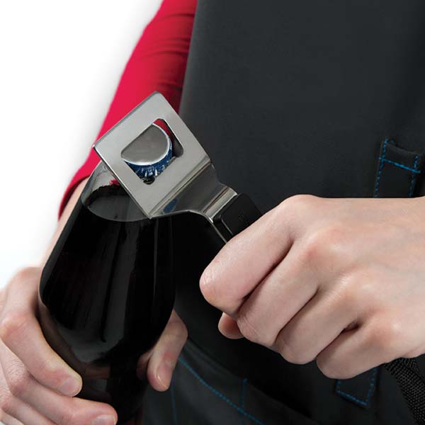Narejen iz močnega in vodoodpornega materiala. Z vključenim odpiračem steklenic, številnimi žepi za pripomočke in pijačo. Nastavljiva vratna zanka.